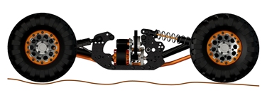 | 常に4輪のタイヤが接地する機構を持つKATAOKA-リンク。 |