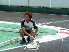 「うぉ〜!すげぇじゃん!行け!行け!TSURUちゃん!」。タイヤセッターエリアから、時折、見を乗り出し、コースの方を見る私。が、しかし!レース中盤、今度は鶴田選手が他車と接触し痛恨の転倒!?順位を大きく下げてしまう・・・。