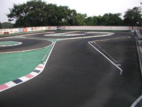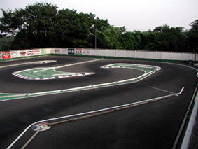 バックストレートを立ち上がり、右のインフィールドへ。見るとそうでもないように思えるが、路面のグリップ感がない状態だと、握ればオーバーステア、握らなければアンダーステアという感じで、スムーズにクリアすることが難しいようだ。最終コーナーへの小さなS字へのアプローチも難しく、ここで膨らんでしまうと、大きくタイムをロスしてしまう。最終コーナーを立ち上がるとヘの字になったホームストレート?がある。ここは立ち位置を1コーナー側だと見やすいらしいが、最終コーナー側に立つと見にくいということ。予選、そして決勝時に自分の好きな場所に立てない可能性が大きいので、いろんな位置に立って練習する必要がある。また最終コーナーをクリアすると、即、ピットエリア入口が待っている。決勝時には何台も一緒にピットに入ることも考えられることから、スムーズに入る練習、そしてピットアウトする車を避けるために左側に大きく振って自分のピットクルーが立つ位置へ車を停めることも必要である。