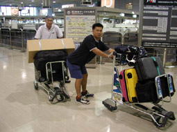 8月10日(金)。6時30分の出発時間にさいとうさんが遅れるという連絡が入り、部屋で待機することに。トシゾー店長が、昨日、大分空港で買ったスーツケース用のベルトを替えっこしてくれとねだるので、自分のベルトを持って部屋を出ると、オートロックのドアが締まり、鍵を閉じこめてしまった・・・。今、考えると世界戦での私のおせっかち病は、ここから始まっていたのだと思う。10分遅れでさいとうさんがホテルに到着。成田空港を目指す。