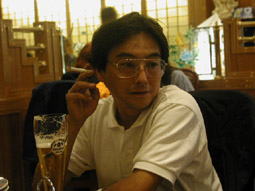 写真中/さんまちゃんならぬ橋本タケヒサくん。車はFGコンペティション2000。関西人のノリの良さはぴかいち。特に○○コネタになったら、もう止まりません状態でした。なお、ハチさんの弟ではありません・・・。