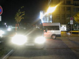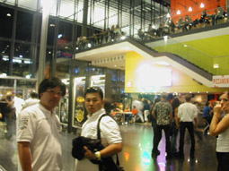 写真中・右/店を出ると、映画館やカジノもあったんだったっけ?とにかく人がワンサカいました。品行方正な私たちは、遊ぶことなく車に乗り込み、帰路についたのでしたが、またもや、ホテルを横目に見ながら、高速道路に乗ってしまった2台。この日もまた30km先までドライブするはめに・・・。 |