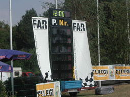 コントロールラインを通過した時点で、瞬時に現在の順位を表示する計測装置の一番上にはゼッケン1。そう私がトップを走る!順調にラップを重ねるも、迎えた5周目、突如、車がストップ。エンジンはかかっているのに、いくらスロットルを握っても、車は前に進まない?どうしたんだ〜〜!?ピニオンか?そのままリタイヤとなった私。車を見ると16Tのピニオンがなくなっている・・・。昨日、車の整備をした際に、外したピニオンをしっかり締めていなかったから?いやそんなことはない。ロックタイトを塗って、渾身の力を込めて、締め込んだのに・・・。