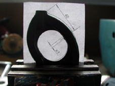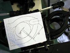 スタビを取りつけるために、アッパーアームの指定された箇所に、ドリルを使って3mmの穴を開け、そこにビスを通さなければならない。そこは、キットに同封されている書類の中に、ご覧のとおり、実寸大の説明書があるので、それをアッパーアームにあてて、その角度のとおりに穴を開けるわけだ。が、しかし、おせっかちな私は、バルクに固定したまま開けようとしたものだから、誤って変な角度で穴を開けてしまった・・・。