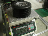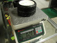 じゃあ、ツーリングのタイヤは?っていうことで、GRPのRタイヤを取り出し計量してみると、0.28kgしかなく、4本だと1.12kg。F1用タイヤの方が0.68kgも重いということがわかった。