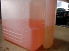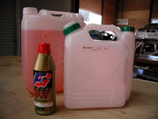 完成したF1をサーキットに運び、タンクに燃料を入れる。F1のタンクは、エコラインと同じものを使用しているが、真横に取り付けられているため、車を傾けないと燃料を入れることはできない。この日は、たっちゃんに手伝ってもらい、燃料を入れた。