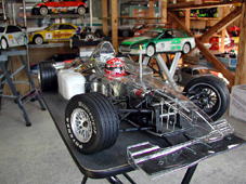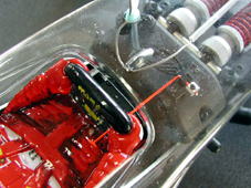 | 佐藤ボデー作のドライバー。ロゴ・マークは手書きとなっている。すごいのは右の写真。何がすごいかって、受信機の電源を入れるときには、F1はボディをかぶせたままではできないのだけど、スイッチを受信機ケースの上部に取り付け、ドライバーのステアリング部分にワイヤーでリンクさせることで、ボディをかぶせたままで、スイッチのオン・オフができるのだ! |