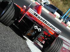 右下の写真は、えらい傾きすぎで、すんません。冷たい路面の上に腹這いになって、写真を撮ったが、「枕元に置いて寝たいくらいや〜!」と、とうちゃんが言っていたのもうなずける、すばらしい出来映え。「Marlboro」のステッカーは、カッティングマシンを使って、ひろりんが作ったもの。雑誌を参考に忠実に再現されたフェラーリ。画像ではわかりにくいが、両サイドのミラーにも細工がされている。おそらく、まだまだ進化していくであろう、とうちゃんフェラーリ。その過程は随時、紹介しようと思う。