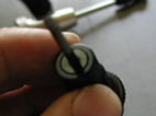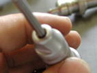 前述のとおり、FGのダンパーケース下部には、Oリングが入っているのだが、これがしっかり入っていないとオイル漏れの原因になると思われる。では、他のメーカーのダンパーはどうなっているのか?それが左のダンパーケースの下側から撮った画像である。