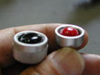 左の画像は、右からFGコンペ用、HARM FX-1用、そしてラウターバッハ用のダンパーである。FG F1用のダンパーとFGコンペ用のダンパーの比較は、「バリバリRC伝説第1部〜Lap5」に掲載しているので、そちらを参照願いたい。