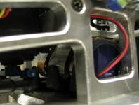 F1で使用していたバッテリーをサーボの上に搭載して走行させていたが、Takuちゃん作の専用バッテリーは、サーボの下、シャシーに直接搭載するので、かなり低重心化が図られる。