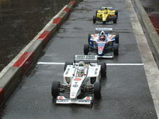 しかしウオータースクリーンじゃなくて、ルースターテールを披露しながらホームストレートを駆け抜ける4台のF1はかっこいい!コントロールタワーから見ていても、ホレボレするくらい。この雨のなか、1コーナー付近にカメラを持って撮影するギャラリーもいる中で、1台の車がペースを上げてくる。そう、それはBAR=Bugsy-kさん。ただ一人50秒台のタイムをマークし、その後もタイムを確実に縮めてくる。私はといえば、車を全くコントロールすることができず、コーナー出口付近でスピンしまくりの状態が続く・・・。