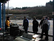 私と「あだたくちゃん」が作ったもの。それはタイヤ交換に入った際に、ほら、ドライバーの前方に掲げているピットストップボードって言うのだろうか、赤を見せていればピット作業中、緑を見せれば作業終了!っていうサインボード。赤のガムテープは、くりごさんから、緑のビニールテープはKEIさんから譲り受け、作ったのであった。で、このボードを博多のまっちゃんに持ってもらうようにお願いした。本当は「冗談じゃねぇ!」と思われたかもしれないが、快く引き受けてくれたまっちゃん。本当に勝手なことしてすみませんでした・・・。