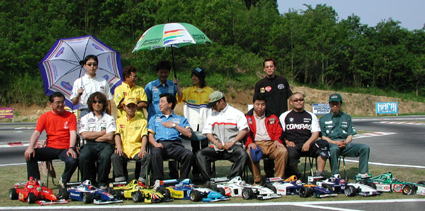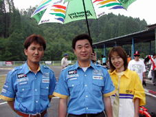 BMW、Jaguarにまで感染してしまった。コスプレ軍団の中でも一番気合いが入っていたのは、チームBENETTON。ドライバーのKojiさん&ピットクルーのヤマちゃんはもちろん、パラソルを持つレースクイーンまで登場し、3人がBENETTONのピットシャツに身を包み、それはもう雰囲気満点!我がチームRothmansもあだたくちゃんがネットオークションで落札してくれたチーム・パラソルを投入したのだが、やはり男の色気だけでは華やかさには対抗できなかった…。