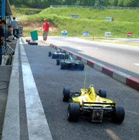 Super Indy Circuitは、敷地面積が広いために必然的にコントロールタワーは高く、またスムーズなピット作業が行えるようにとピットエリアは路面から掘り下げられているがゆえに、他のサーキットに比べ、ドライバーとピットクルーとのコミュニケーションが図りにくい。そこでインカムを使用し、ピットクルーであるあだたくちゃんとスムーズな連携を図り、的確なレース運びをしよう!と思っていたからだ。