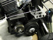 Basic。この前のレースでは、最長ストレートが80mを超えるKawasemi.Jrでは、トップ・スピードがFGエコ・ストックに比べ、明らかに劣っていた。考えられたのは、ギヤ比。FGが24T、40T、16Tの構成であるのに対し、BASICは24T、44T、17Tが標準仕様。これではトップスピードが劣っているのは当たり前。そこでFGと同じ構成にしょうと思い、交換するが、ピニオンギヤとスパーギヤのバックラッシュの関係で、24Tと40Tは使用できない。そこで25Tと42Tを使用することにした。ステアリングサーボには、Futaba5301、エンコンサーボにはSANWA