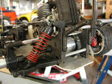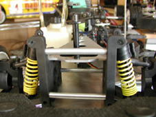 前々から思っていたけど、BASICのバネって固くない?キットには前後、ゴールドのバネがついているが、FGエコストックと比べ、非常に固い。そこでFGコンペで使用していたプログレッシブ・スプリングに交換することに。フロントにはイエロー、リヤにはレッドに交換。上から押さえてみると、いい感じで動く。特にリヤはスムーズになったので、おそらくこれで!と早速コースイン。