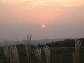 ススキの群生の向こうに沈む夕陽は、秋の深まりを感じさせます。思わず車をとめて、見入ってしまいました。