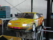 一喜一憂だったFG CUP in ホクセイ・サーキットでしたが、 チーム「九州男児」の大活躍、そしてYNさん、まっさん、こてつさんをはじめとするアマドゥ軍団とのご対面、なかでもYNさんが「ワイルド野郎さん、まあ、コーヒーでもいかがですか?」とメカトラブルのあと、誰も寄せ付けないぞう・モードに入っていた私に、温かい言葉をかけていただき、本当にありがとうございました。これからもみなさんとは、HP上ではもちろん、レースでも交流を深めていければと思います。(左の車は、まっさんのアウディ。ヘッドライトが点灯しているのがわかりますか?)
