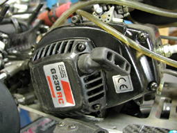混合比1:25の燃料で慣らしを行う。しかしいくらリコイルを引っ張ってもエンジンがかからない。スーツの上着を脱ぎ、ネクタイを外し、シラ真剣引っ張る。まるで大きなかぶのよう。「うんとこしょ!どっこいしょ。まだまだエンジンはかかりません・・・」 何回引っ張っただろう。ついにNEWゼノアが目覚める!トシゾー店長にニードル調整をお願いする。甘めのニードルでコースイン。ゲロゲロ言わせながらコースを回る。トシゾー店長の指示で車を止め、ニードルを調整してもらいながら 走り続ける。ベストなニードル位置ではないものの、絶不調のsoloエンジンとは比べモノにならないほどのトルク、そしてストレートの伸びを実感。