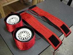 ◆タイヤウオーマー・・・過去のレースで、タイヤウオーマーの重要性を認識させられ、今回はFG製を準備。タイヤはP1とP2をメインに、カットスリックのSX2、SX3、SX4を用意した。特に固いタイヤを使う場合には、気温が上がったこの時期でも、タイヤウオーマーは必需品である。 |