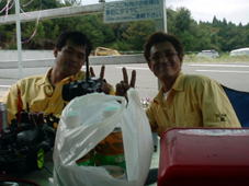 フ−リガンのNo.1ドライバーとダッグを組むことが決まったピエール氏だ!Kawasemi.Jrに到着するとMM氏とトシゾ−店長が2人きりで大量のイベント機材を4t車に積み込み終わった・・・まさにその瞬間だったみたいで!・・間が悪い^^;。印象も良くない^^;気が少ししたが、しょうがない(^^)v。私たちも浜ジョージとピエールの荷物を積み込み、いざ出陣!