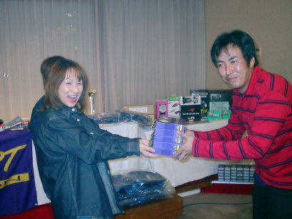 2日がかりで遠征レースに行くと、私たちもだが、みなさん多分、仲間同士でレース前日の夜、居酒屋なんかで盛り上がってる事でしょう(^^)。それを出来ればレース参加者全員で、親睦を深め、旨い料理で酒でも飲もう!と言うものに私は思えた・・しかも、そこにはレースクイーンが花を添えてくれ、ウン十万円!分の大ビンゴと大抽選会の豪華な景品がずら〜と並ぶ・・チームカメレオンさんを筆頭に、盛り上がらないわけがない!私もちゃっかりTOP12をゲットした(^^)v・・・